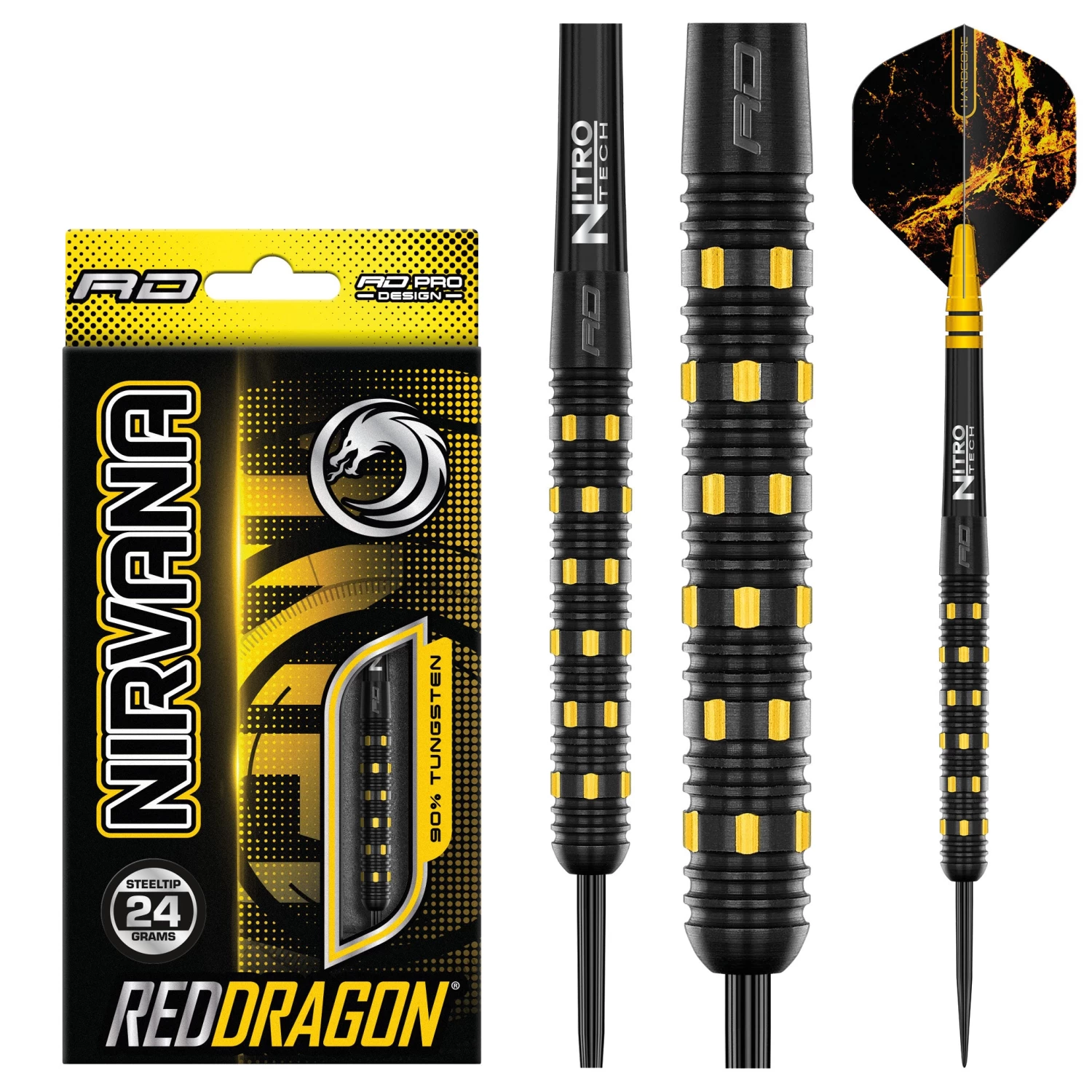 Nirvana black and gold feature proprietary milled grip design, creating darts that free flow to maximise player energy and release with fluid style and innovation.
